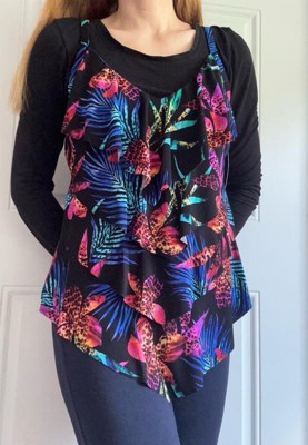 [This review was collected as part of a promotion.] This tanking top is stunning! I love the color and it for sure makes me look and feel slimmer immediately when I put it on. I love the little frills it add nice dimension to it. I paired it with a black high waisted bikini bottom and loved it. I need to order these in more patterns. (I feel like this top is definitely true to size.)