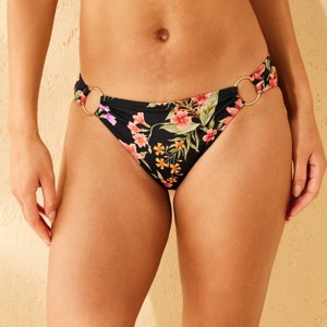 Shade & Shore Women's bikini bottom has a tropical print. It comes with two side rings. Contrary to my expectations, the rings are quite comfortable. They are stylish but not heavy. I love the print and the cut of this swimwear. It fits me perfectly. It's easy to wear. It's also easy to wash. The fabricfeels valuable.