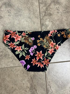 Liven up your beach look with this Tropical Print Medium Coverage Bikini Bottom from Shade & Shore™. The low-rise bikini bottoms are made from soft, stretchy tricot fabric with an elastic at-leg opening for comfortable wear in and out of the water. Medium coverage lets you take on the beach or pool in complete confidence, and the allover tropical print on the pull-on bottom finishes off the stylish look.
