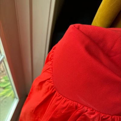 The red looks like two different colors and looks very cheap. The white one looked great but this dress isn’t for girls with short waists and hips - it hits awkwardly. The skirts are double lined but the top is cotton and shows belly button indent. Would definitely need to wear a bra. The dress has pockets