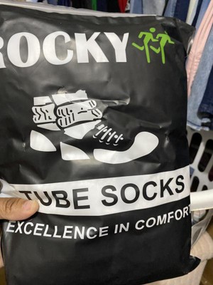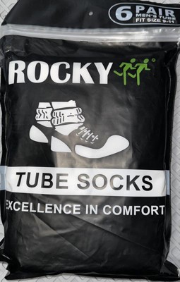 The Rocky tube socks for women were nice. They weren’t the softest. Kinda rough on my feet. The package said Men’s fit sizes 9-11 and had 6 pair in them. You really can’t tell the top and bottom. There isn’t a defined heel area. They do stretch so if you have bigger calves they will fit. They did keep my feet warm. It would be nice to see some comfort in the heel area. All in all if you need socks to just layer up or lounge around in, these would be great.