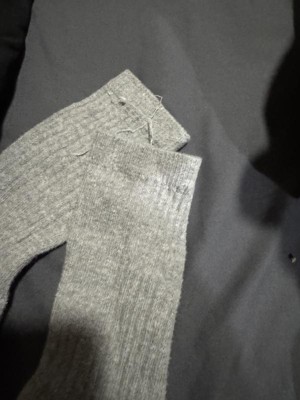 These socks are so comfortable! I wear them both with outfits and just to lounge around the house and they’ve been amazing both ways. They’re thin but warm and they stretch well so they hold on but they don’t cut off your circulation. They are a nice gray color as well. They wash nicely and there isn’t really any shrinkage afterwards. Definitely a great choice.