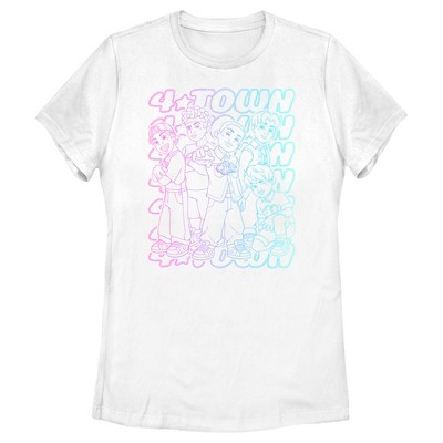 Mei Lee is a 13-year-old girl who is struggling with balancing friends and school and being an obedient daughter, if that weren't enough, she turns into a big red panda when she gets too excited! Join in on all the fun with this officially licensed Women's 4*Town Breaking Free World Tour Tee from Turning Red on Disney+! This tee features a graphic of 4*Town in panels with "4*Town Breaking Free World Tour" printed around them!