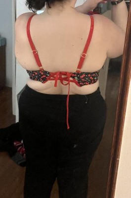 This top is cute, but the sizing is way off. I am a 34B and typically wear a size small in bikini tops. Y’all, this top was HUGE!!! Like ridiculously large. I had to size all the way down to an xxs just to get the fit I like. Beware of the wonky sizing. Otherwise, it’s cute, I like the tie back, and the straps are adjustable. Very similar style to Frankie’s Bikinis Cola top.