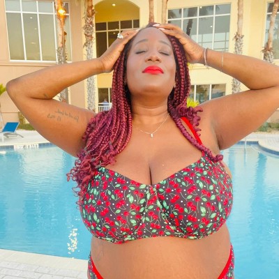 I bought and returned. I’m a 38G natural and can only wear plus size bikini tops. It’s so cute and love the print. An 18 fit perfectly and then I alter the band to fit tighter. What I just didn’t like was the red straps that were a different red than the cherrys. It just looked so off to me and a very shiny material. I wanted to love it so much but every time I looked in the mirror the straps just looked wrong. If that doesn’t bug you then it’s perfect!!