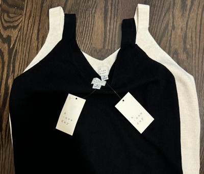 This V-Neck Pullover Sweater Tank from A New Day™ makes a comfy addition to your warm-weather wardrobe. Fashioned in a standard fit, this sweater tank top features a chic V-neckline and a lightweight shaker construction for cozy wear. Plus, the ribbed hem offers a crisp, neat look. Pair it with anything from pants and skirts to shorts for versatile wear options.