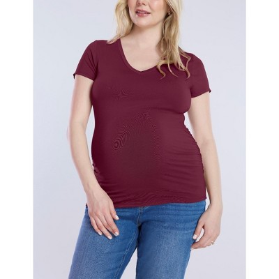 Women's V-Neck Side-Ruched Maternity Long Sleeve Tee - Zinfandel - Size: X Small - Motherhood Maternity