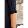 This fashionable tunic will become your favorite. * Lace trim along the neckline * Back yoke with slight ruching * Elbow-length sleeves with functional tab fastening * Length approx. 31.25 inches * Viscose. Imported. * Machine wash cold with like colors, inside out * Hang to dry or lay flat