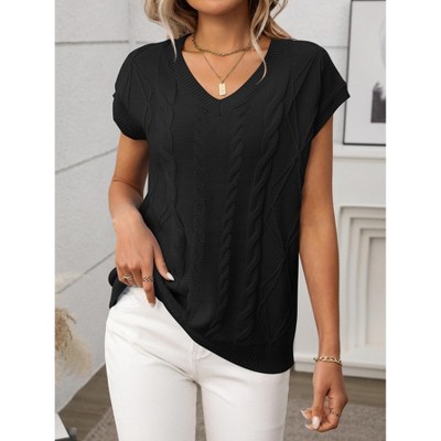 Women's Vest Cable Knit V-Neck Sweater Vest Short Sleeve Top