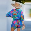 Make a bold statement with this eye-catching romper featuring a vibrant abstract print. The kimono-inspired sleeves add a chic, relaxed vibe, while the waist tie cinches in your figure. Crafted from a lightweight, breathable fabric, this playful one-piece is perfect for sunny days and warm evenings. Product code: CAA13F5D023TT,CAA13F5D023RK