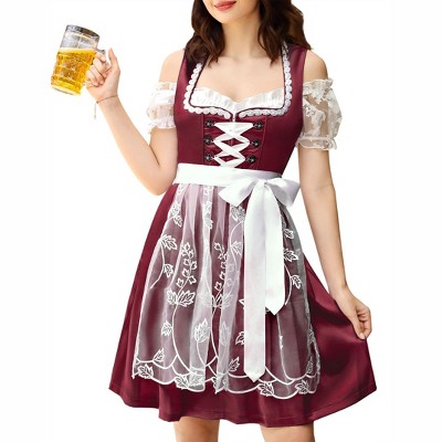 Women's Vintage Three Piece Costume Ensemble Green Dress Apron Off Shoulder Crop Top 2XL