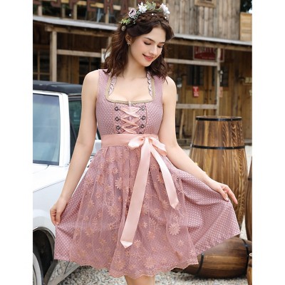 Women's Vintage Two-Piece Dress Costume Square Neck Suede Dress with Embroidered Sheer Apron - 2 of 4Women's Vintage Two-Piece Dress Costume Square Neck Suede Dress with Embroidered Sheer Apron - 3 of 4Women's Vintage Two-Piece Dress Costume Square Neck Suede Dress with Embroidered Sheer Apron - 4 of 4