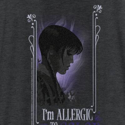 Join Wednesday Addams, the death-obsessed daughter from the iconic Addams Family franchise as she attends Nevermore Academy, hones her psychic abilities, and solves age-old mysteries in the new upcoming series Wednesday from Netflix! This officially licensed Wednesday I'm Allergic to Color Women's Graphic Racerback Tank Top features a black and white animated silhouette of Wednesday along with the phrase: "I'm Allergic to Color" across the front. Get some new Wednesday designs and embrace the darkness!