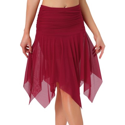 LEVEN SIXTEEN Women's Western Boho Skirt - Lace Ruffle Asymmetrical Hem Cowgirl Style Red X-Small