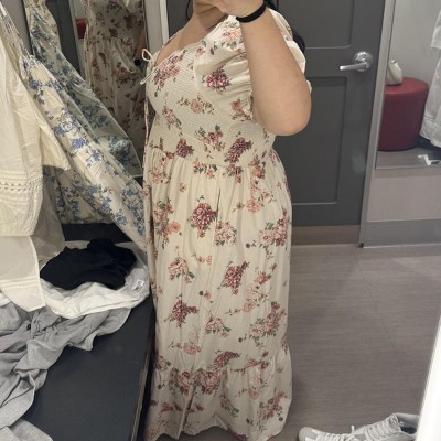 Super cute prints. Love that it’s cotton. The off white you need to wear nude colored undergarments since it’s slightly see through. The only issue is it’s super low cut. I sized down 1 size and wear it backwards to make it more modest and it works really well actually.