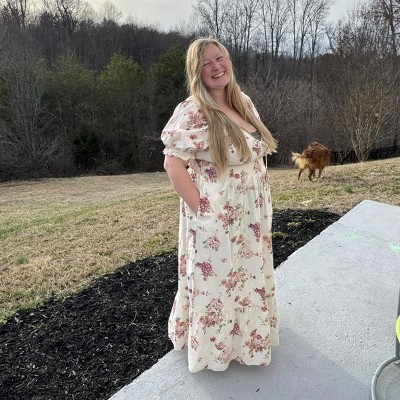 Highly recommend this dress to my heavier curvy girlies. I’ve had trouble finding dresses with my “X figure” being on the heavier side and I’m happy to say this dress doesn’t hug any of the wrong curves. The mock corset bodice under the bust gives the illusion of a slimmer waist and a flatter stomach while the A-Line shape flares out into a very pretty silhouette. The sleeves cover down to right above my elbow, giving the appearance of slimmer arms, complimenting the romantic neckline. It does reveal a lot of chest, but can always be adjusted with some fashion tape for those who want more coverage. Also a nice ivory and blush for a deep autumn complexion. AND IT HAS POCKETS!! If I had to give a critique, I’d say the fabric is kinda meh, but it’s light and breathable for warmer climates.