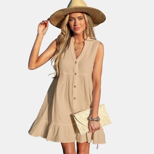 Product Name: Women's Ruffle Hem Front Buttons Mini Cover-Up Dress - Cupshe