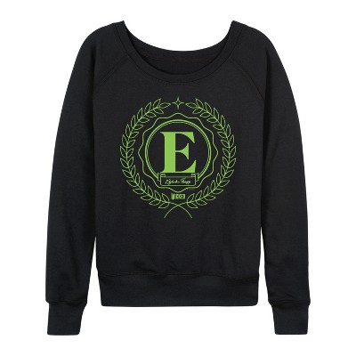 Wicked - Art Deco Logo - Women's French Terry Pullover Long Sleeve Shirt - Celebrate the untold story of Oz with Wicked graphic apparel. Featuring bold designs inspired by Elphaba, Glinda, and the magic of friendship and defiance, these pieces capture the spirit of the hit Broadway musical. With iconic logos, quotes, and enchanting artwork, Wicked apparel lets every fan show their love for this spellbinding story in style.