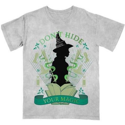 Wicked - Dont Hide Your Magic - Women's Short Sleeve Graphic T-Shirt - Celebrate the untold story of Oz with Wicked graphic apparel. Featuring bold designs inspired by Elphaba, Glinda, and the magic of friendship and defiance, these pieces capture the spirit of the hit Broadway musical. With iconic logos, quotes, and enchanting artwork, Wicked apparel lets every fan show their love for this spellbinding story in style.