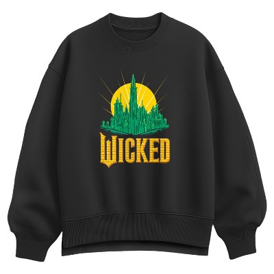 Wicked - Elphaba Bootleg - Ladies Oversized Fleece Crew Sweatshirt - Celebrate the untold story of Oz with Wicked graphic apparel. Featuring bold designs inspired by Elphaba, Glinda, and the magic of friendship and defiance, these pieces capture the spirit of the hit Broadway musical. With iconic logos, quotes, and enchanting artwork, Wicked apparel lets every fan show their love for this spellbinding story in style.