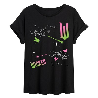 Wicked - Elphaba Gravity- Women's Short Sleeve Graphic T-Shirt - Celebrate the untold story of Oz with Wicked graphic apparel. Featuring bold designs inspired by Elphaba, Glinda, and the magic of friendship and defiance, these pieces capture the spirit of the hit Broadway musical. With iconic logos, quotes, and enchanting artwork, Wicked apparel lets every fan show their love for this spellbinding story in style.