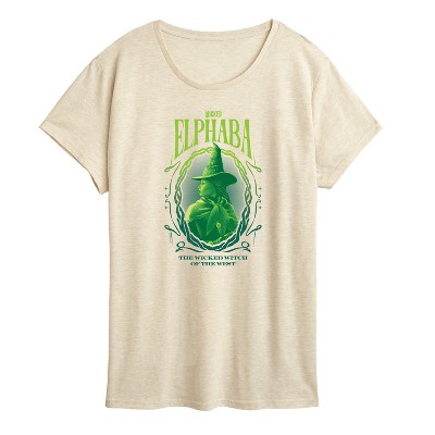Wicked - Elphaba Silhouette - Women's Short Sleeve Graphic T-Shirt - Celebrate the untold story of Oz with Wicked graphic apparel. Featuring bold designs inspired by Elphaba, Glinda, and the magic of friendship and defiance, these pieces capture the spirit of the hit Broadway musical. With iconic logos, quotes, and enchanting artwork, Wicked apparel lets every fan show their love for this spellbinding story in style.
