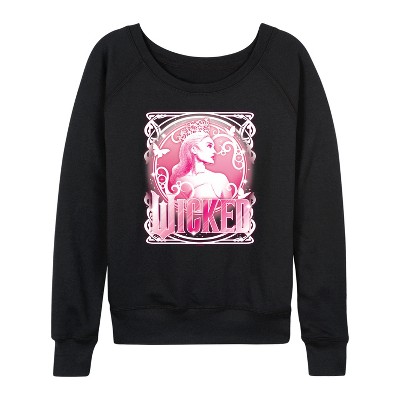 Wicked - Glinda Portrait Logo - Women's French Terry Pullover Long Sleeve Shirt - Celebrate the untold story of Oz with Wicked graphic apparel. Featuring bold designs inspired by Elphaba, Glinda, and the magic of friendship and defiance, these pieces capture the spirit of the hit Broadway musical. With iconic logos, quotes, and enchanting artwork, Wicked apparel lets every fan show their love for this spellbinding story in style.