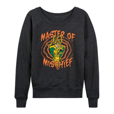 Women's Wicked Shiz University Lightweight French Terry Wide Neck Long Sleeve Graphic Shirt - Heather Charcoal - Small