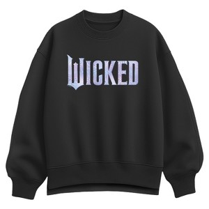 Wicked - Sparkle Logo - Ladies Oversized Fleece Crew Sweatshirt - Celebrate the untold story of Oz with Wicked graphic apparel. Featuring bold designs inspired by Elphaba, Glinda, and the magic of friendship and defiance, these pieces capture the spirit of the hit Broadway musical. With iconic logos, quotes, and enchanting artwork, Wicked apparel lets every fan show their love for this spellbinding story in style.