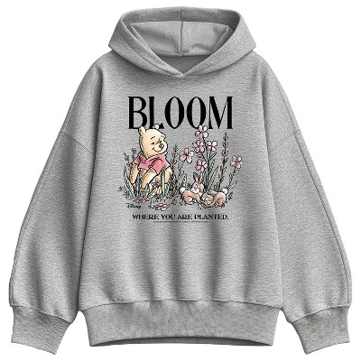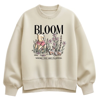 Women's Winnie the Pooh Bloom Where You Are Planted Oversized Fleece Crew Sweatshirt - Athletic Heather - X-Large