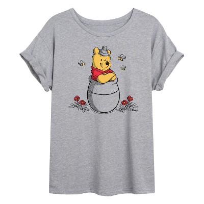 Winnie the Pooh - Pooh In Honey Pot With Bees - Women's Short Sleeve Graphic T-Shirt - Step into the Hundred Acre Wood with Winnie the Pooh graphic apparel—featuring Pooh, Tigger, Eeyore, and Piglet in cozy, nostalgic styles for all ages.