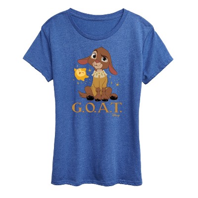 All of your dreams are about to come true! Join Asha in making a powerful cosmic wish in the highly anticipated new Disney animated film Wish with brand new officially licensed apparel for the whole family! This Women's Wish Valentino Birthday G.O.A.T. Graphic T-Shirt features Valentino and Star with the text: "Birthday G.O.A.T.," covered in stardust across the front. Immerse yourself in Asha's world and find out what happens when your heart's desires become reality!
