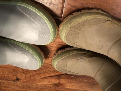 Despite my first pair lasting only 9 months before developing cracks on the top side that allowed water through, I bought another pair because they’re so darn comfortable.