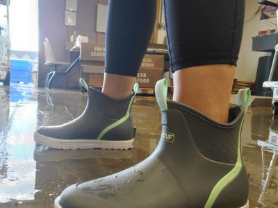 The XTRATUF Wheelhouse fits the bill for a commercial grade version of the Ankle Deck Boot. When you are on your feet 12 hours or more, feet often will swell. This boot has a wider fit to address this issue and keep you comfortable. The 6-inch upper of this waterproof pull-on boot is reinforced in high wear areas, such as the toe and heel, for maximum durability. This boot features an EVA/PU blend insole for all-day comfort, and an oil resisting, SRC-rated flat outsole for excellent traction.