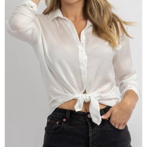 Perfectly tailored and soft to the touch.Long sleeves, collared, woven, button front, relaxed fit. 100% polyester. The model is wearing a size small. Height 5'8. Dress size 2.