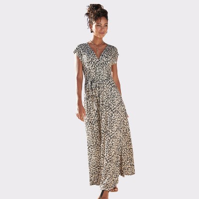 Women's Wrap Look Maxi Dress - LASCANA - Black & Taupe Floral 2