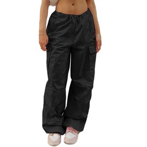 - Design: Low-rise, baggy Y2K cargos. Features drawstring waist, straight wide legs, cargo pockets, and cuff details for a relaxed silhouette.
