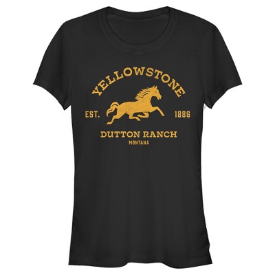 Women's Yellowstone Blue Horse Dutton Ranch Montana Est. 1886 T-Shirt - Black - Large
