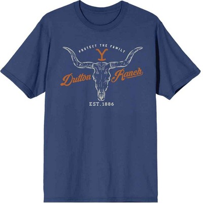 • Strut your stuff with this stylish new women's t-shirt that is perfect for every occasion! Featuring a large cow skull with the Dutton Family Ranch logo on its forehead, framed by the words: "Yellowstone Est. 1886 Dutton Ranch" across the front.