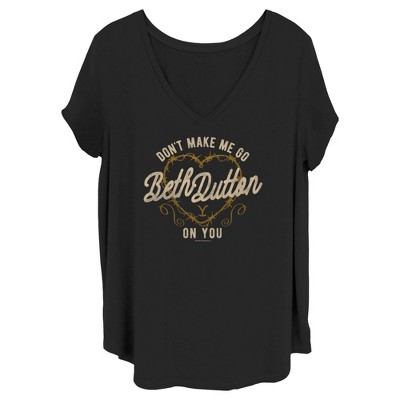 • Strut your stuff with this stylish new juniors' V-neck plus size t-shirt that is perfect for every occasion! Featuring the silhouette of a cowboy riding a horse, framed by the words: "Yellowstone Est. 1886" in distressed yellow letters across the front.