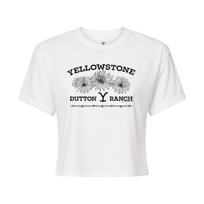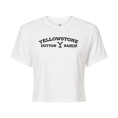Yellowstone - Dutton Ranch Illustration - Juniors Cropped Cotton Blend T-Shirt - Saddle up with Yellowstone graphic apparel that captures the rugged spirit of the hit series. Featuring bold designs inspired by the Dutton family—John, Beth, Rip Wheeler, Kayce, and more—each piece reflects the grit, loyalty, and high-stakes drama of life on the ranch. Perfect for fans who live for Western toughness and power.