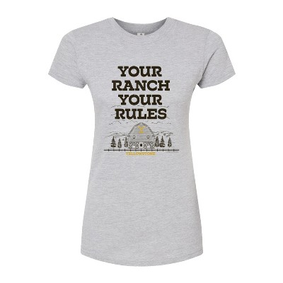 Women's - Yellowstone - Dutton Ranch Logo Scene Fitted Graphic T-Shirt - 2 of 4Women's - Yellowstone - Dutton Ranch Logo Scene Fitted Graphic T-Shirt - 3 of 4Women's - Yellowstone - Dutton Ranch Logo Scene Fitted Graphic T-Shirt - 4 of 4