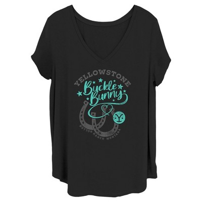 • Enjoy comfort and fashion at the same time with this unique juniors' graphic V-neck plus size tee design from Yellowstone.