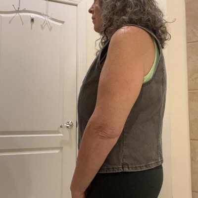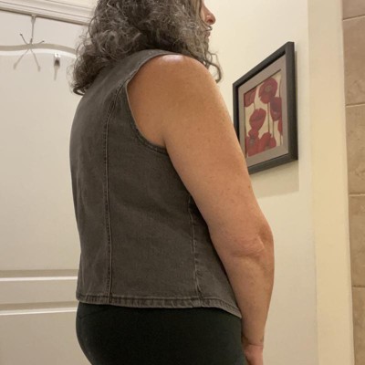 [This review was collected as part of a promotion.] I am wearing an XXL size vest In a denim like material. The color is gray with a gray zipper and silver snap at the neck line. The vest is midweight and very comfortable. I like that I don’t have to wear a shirt underneath if I don’t want to because it has full coverage. This vest could be worn over a dress, with a skirt, jeans, or a pair of shorts. This vest can also be dressed up or dressed down. For the price I think this is an awesome vest and a great addition to my wardrobe. I received an incentive to write this review.