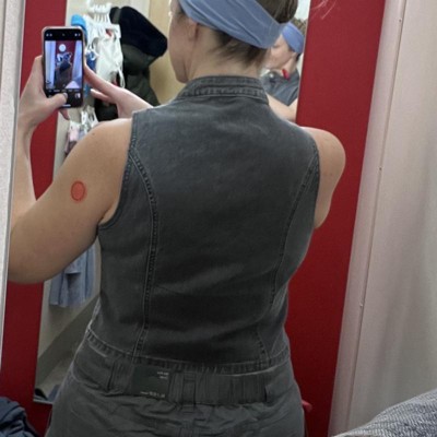 [This review was collected as part of a promotion.] I got this Wild Fable zip up denim Moto vest in a size XS. For size reference, I am 5'2" tall and I weigh 110 lbs. I picked it up in the blue denim color, and it's super cute! I like that it's versatile, you can wear it zipped up as a top or leave it open and layer it like a vest. The fit is flattering and the material has just enough structure without being stiff. This is a great piece to mix and match with different outfits. I received an incentive to write this review.