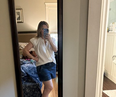 This style of puff sleeve isn’t the most flattering if you have wider shoulders. I have other blouses with the puff sleeve but with this one, it’s what I would consider a capped sleeve with puff. Meh. Haven’t decided if I’d keep it and I was influenced by someone on instagram to purchase it. If you can try it on in the store, I’d suggest that route. There are better options for a better than basic white summer blouse.