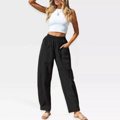 Women Summer Fall Wide Leg Loose Long Jeans Pants Drawstring High Waist Casual Denim Pants