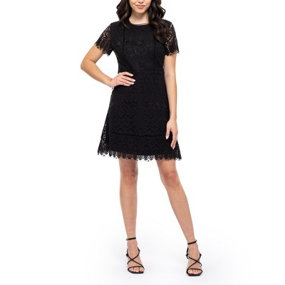 Womens A Line Dress with Lace Braclet Sleeve V Neck Tunic Dress Mesh Sleeve Summer Basic Dress, Black - 2X