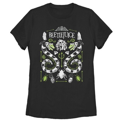 • Stand out in undead style with this unique women's graphic tee design from Beetlejuice.