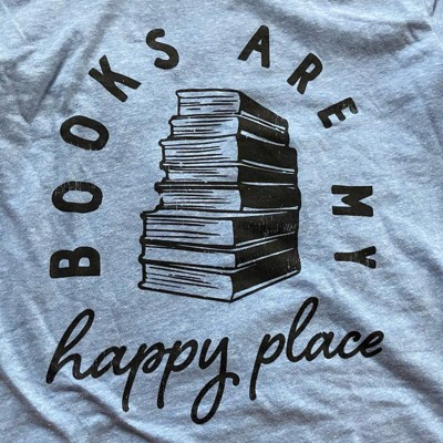 Womens Books Are My Happy Place T Shirt Funny Book Worm Reading Lovers Tee for Ladies - Crazy Dog Women's T Shirt for Nerds Light Blue M